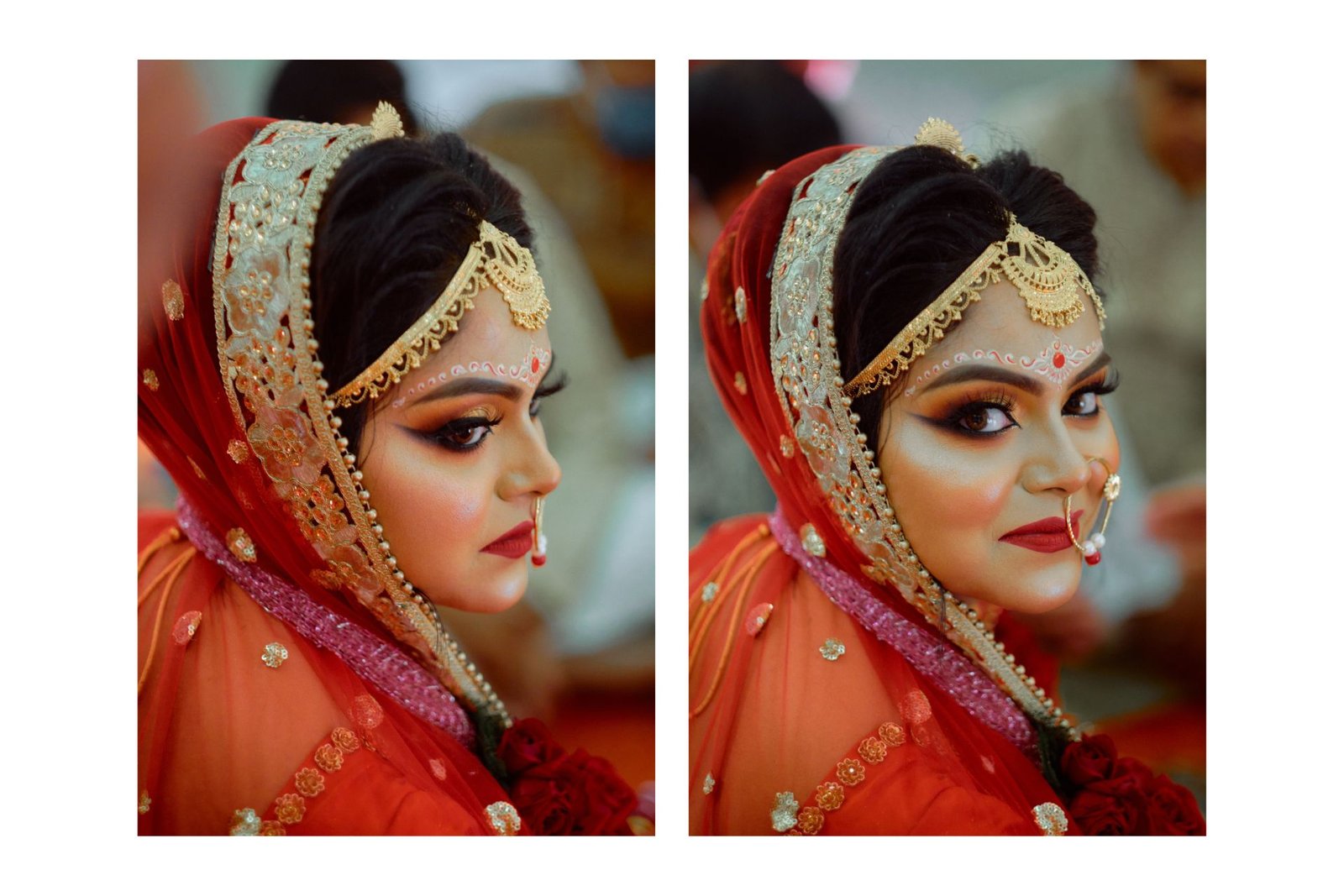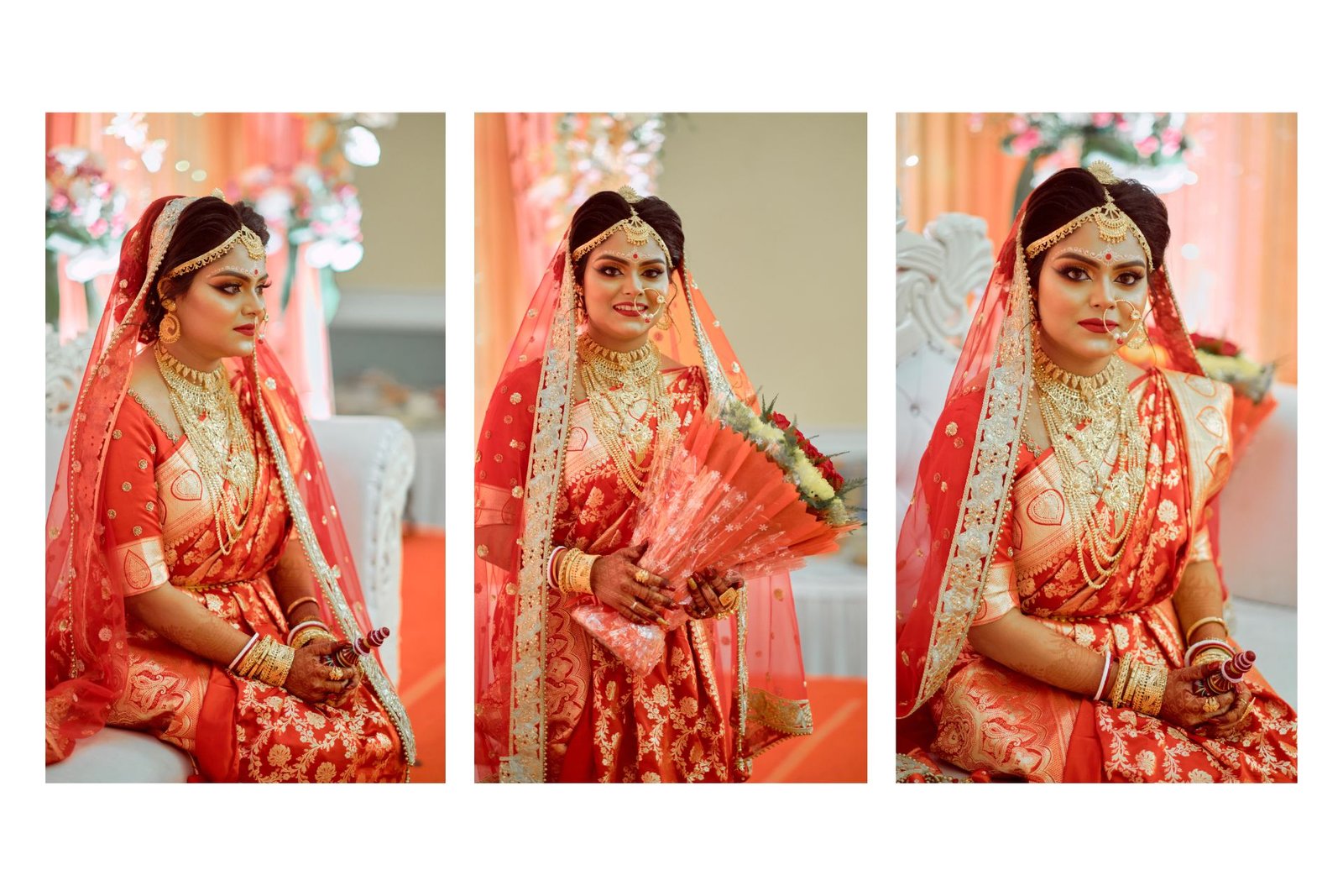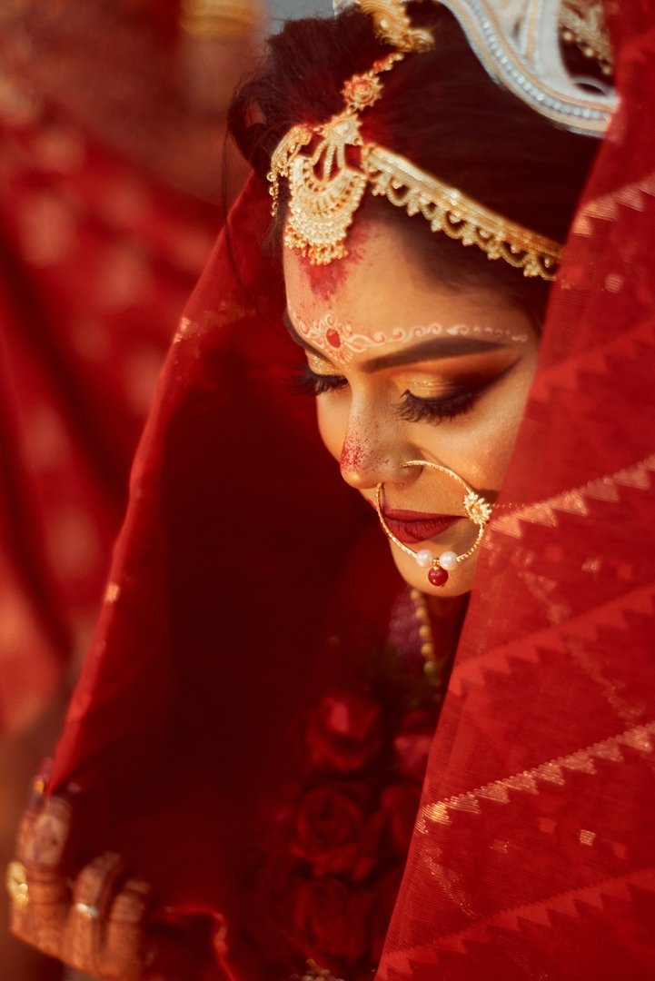 Among the breathtaking collection of photographs, the portraits of Paulomi stood out like old oil paintings, evoking a sense of timelessness and grace. As their wedding photographer, I aimed to capture not just her beauty but also the essence of her soul in each frame. The fine art look and feel of these portraits enhanced the sense of romance and elegance that permeated the entire Rajbari wedding celebration. These portraits will undoubtedly become cherished heirlooms, a symbol of the eternal love that binds Preetom and Paulomi.