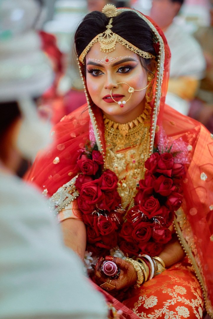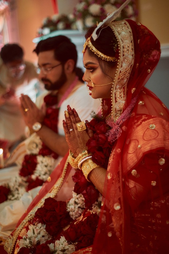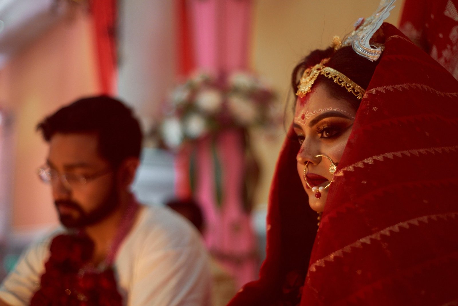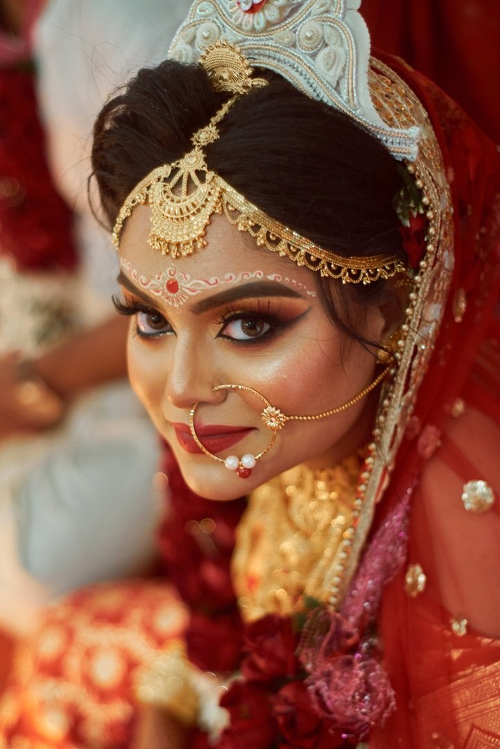 Among the breathtaking collection of photographs, the portraits of Paulomi stood out like old oil paintings, evoking a sense of timelessness and grace. As their wedding photographer, I aimed to capture not just her beauty but also the essence of her soul in each frame. The fine art look and feel of these portraits enhanced the sense of romance and elegance that permeated the entire Rajbari wedding celebration. These portraits will undoubtedly become cherished heirlooms, a symbol of the eternal love that binds Preetom and Paulomi.