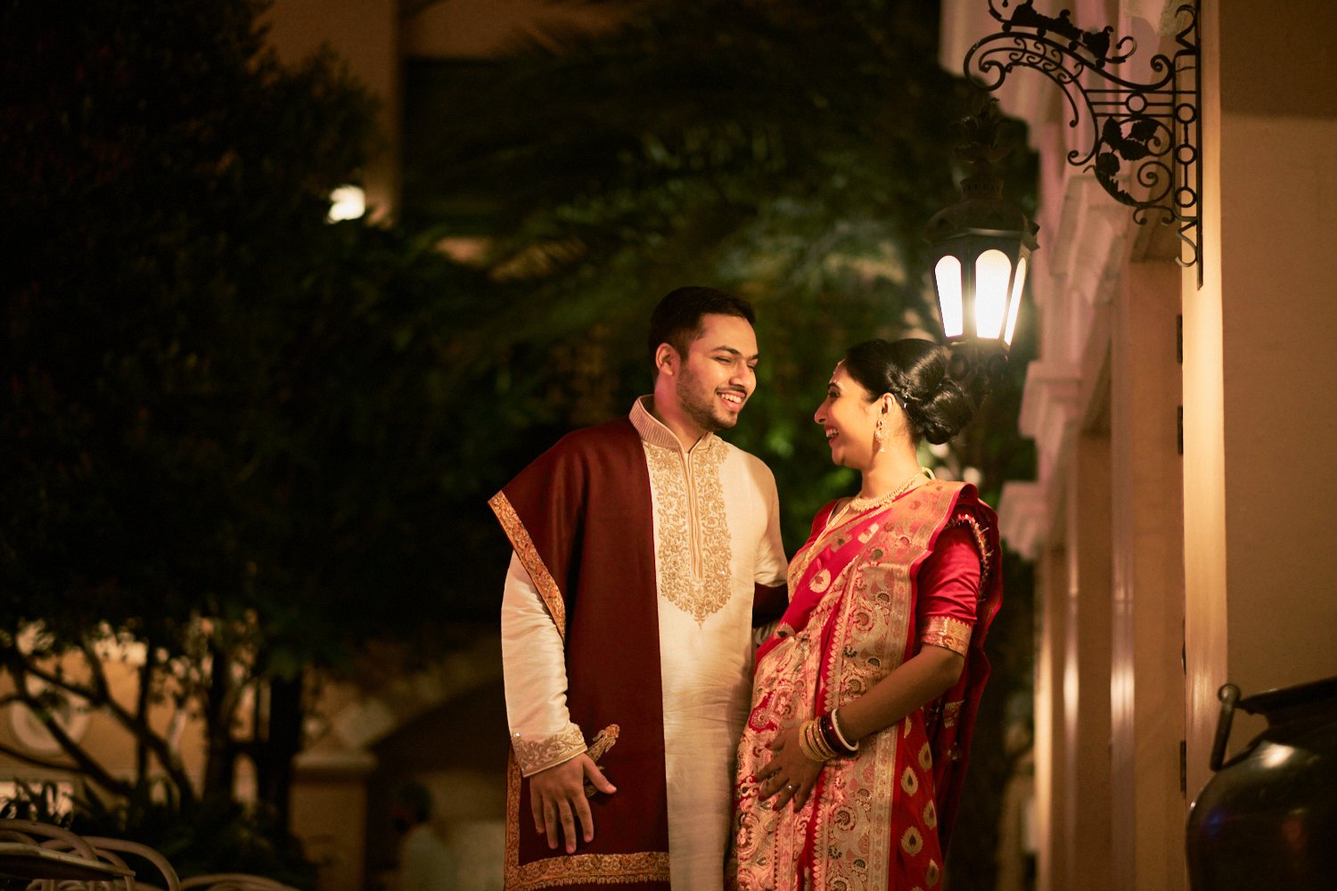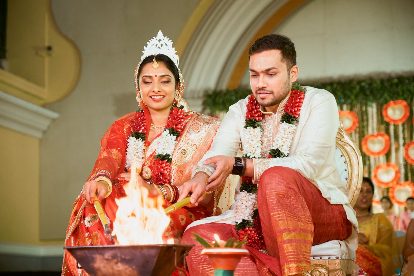The wedding of Amrita and Aagam was a joyful celebration of their love, taking place at the stunning Rajkutir, Swabhumi in Kolkata. The beautiful venue was surrounded by lush greenery and architectural elegance, providing the perfect backdrop for their special day. As a fun-loving couple, Amrita and Aagam’s wedding was filled with laughter, music, and joy.